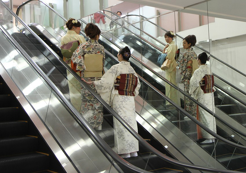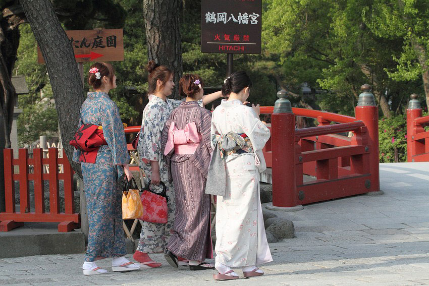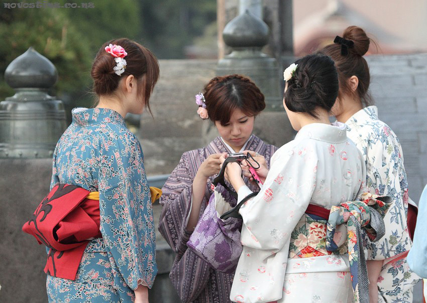 Японские девушки в традиционных национальных костюмах – это нормально для современного Токио.