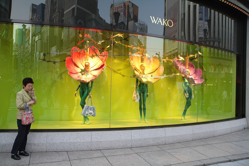 У витрины магазина в районе Гинза, центральная часть Токио.