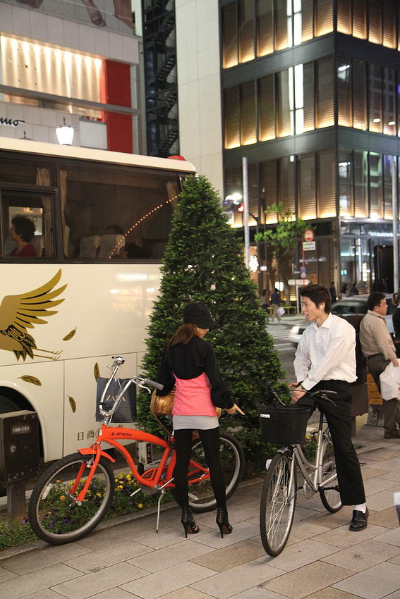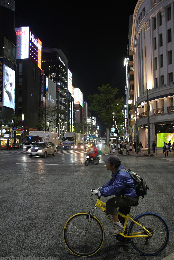 Вечером в районе Гинза. Для передвижения жители Токио используют самый различный транспорт.