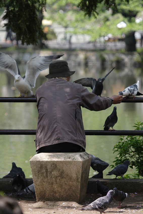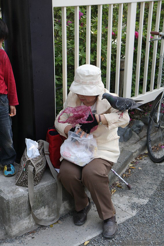 Эта бабушка тоже дружит с птицами Токио.