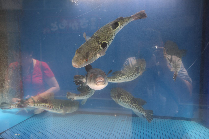 А эту рыбку, под названием фугу, подают в японских ресторанах. Из нее готовят традиционное и очень популярное блюдо японской кухни. Рыба, из которой готовится блюдо, содержит смертельную дозу тетродотоксина, концентрация которого должна быть уменьшена до допустимой в процессе приготовления. Фугу считается деликатесом, её употребляют как с целью “пощекотать себе нервы”, так и для получения лёгкого эйфорического эффекта, вызываемого остаточным количеством сохранившегося в блюде яда. Только с 2004 по 2007 годы 15 человек погибло, отравившись фугу, и около 115 человек были госпитализированы. В 2009 году сразу семеро посетителей ресторана японского города Цуруоки (севернее Токио) отравились блюдом из фугу…