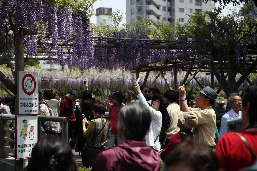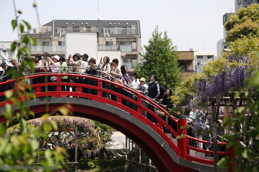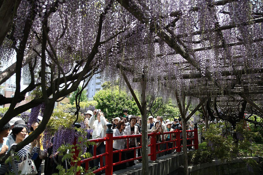 На празднике цветения глицинии (Wisteria).