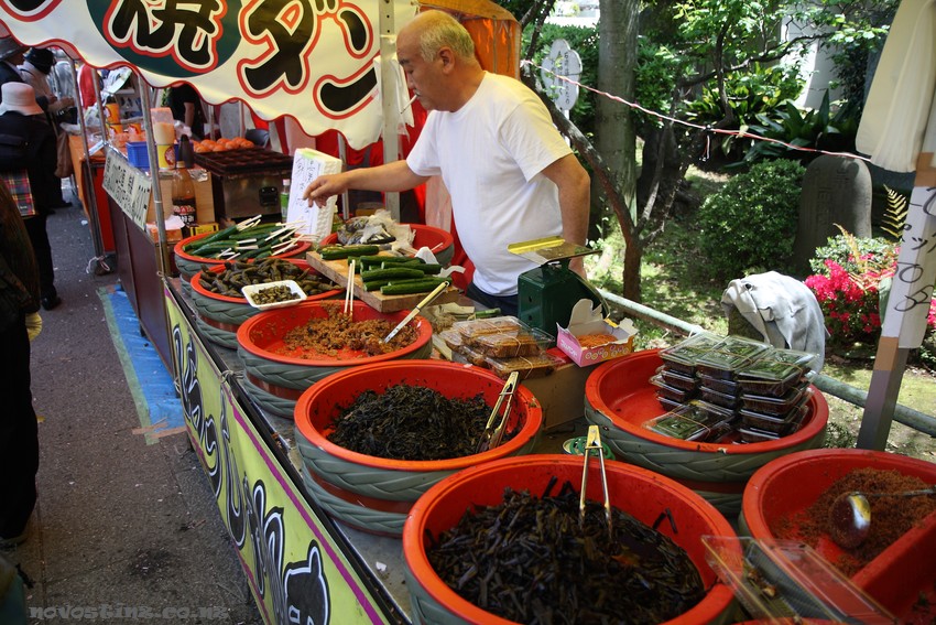 Различные солености и закусочки на небольшом базарчике в Токио.