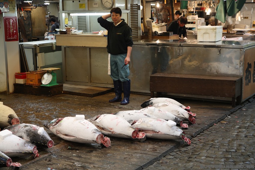 На рыбном рынке в Токио. Тунец (Tuna) готовится для отправки в многочисленные магазины, рестораны и закусочные города.