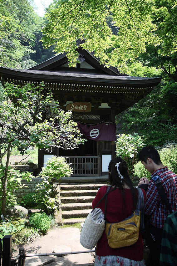 Рядом с храмом расположены два пруда — Гэндзи и Хэйкэ. В пруду Гэндзи растут белые лотосы, в Хэйкэ — красные.