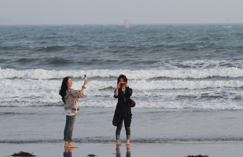 Японские девушки на берегу океана…