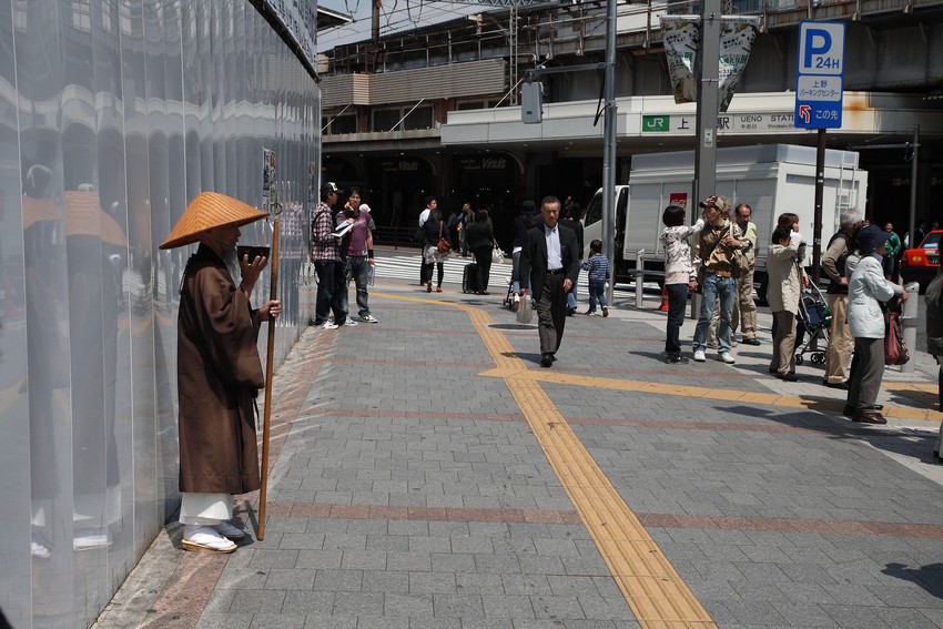 Монах-синтоист просит пожертвований.