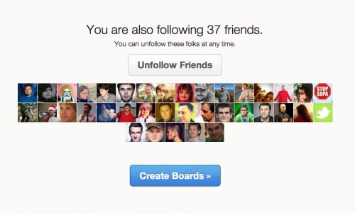 А также ваших друзей с FB, которые уже находятся в Pinterest. Они добавлены вам по умолчанию и на втором шаге вы можете их отсортировать.