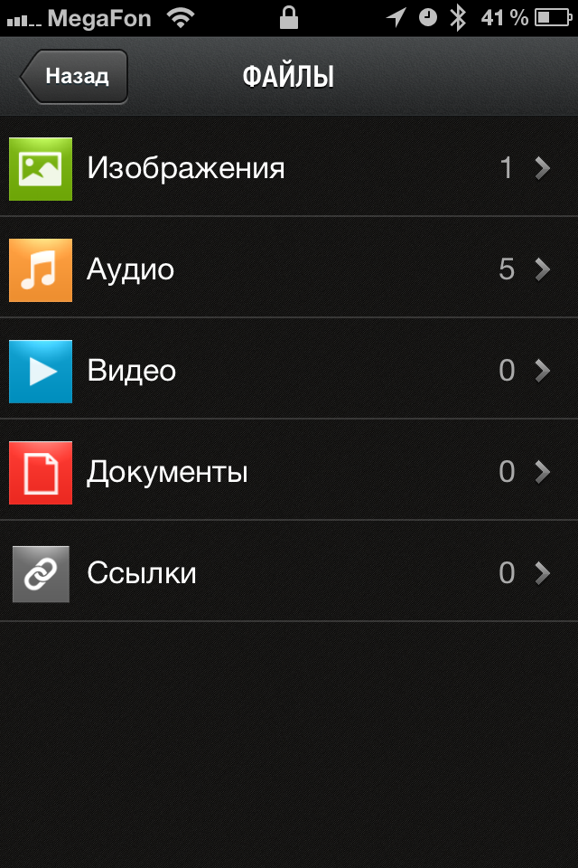 Изначально сервис предлагает несколько папок для хранения различных типов файлов: музыка, изображения, видео, документы, а также отдельную папку для хранения ссылок, хотя пользователь может самостоятельно выбирать, в какую папку загружать файлы. Ограничений по типу файлов тут нет.