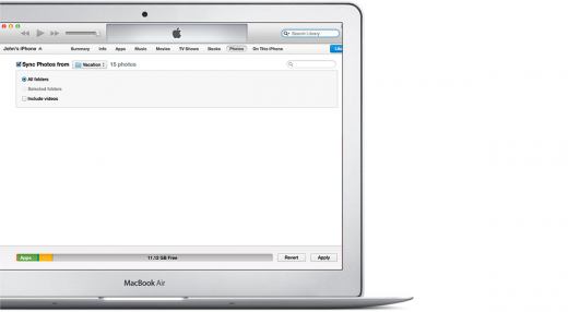 Инструкции аналогичны таковым при синхронизации фото с помощьюiTunes.