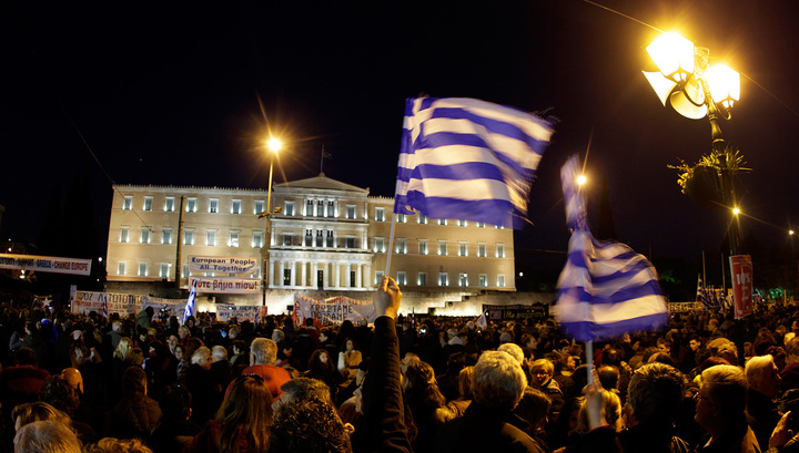 Речь идет о дефолте Греции и ее последующем выходе из зоны евро, напоминает "Россия 24". Общий долг страны — порядка трехсот миллиардов евро. Расплачиваться с ЕС и МВФ за счет очередного повышения налогов и сокращения социальных пособий Афины наотрез отказались, вместо этого сенсационно объявили референдум, который пройдет уже в следующее воскресенье.