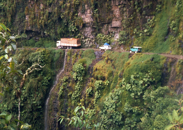 Этот горный перевал получил своё прозвище «Дорога смерти» за то, что это дорога с двусторонним движением, но шириной всего в один автомобиль. Юнгас связывает тропические леса Амазонки и северную Боливию, на ней часто бывают дожди, туманы, камнепады и оползни. А ещё там есть скалистый обрыв высотой 550 метров, и нет ограждений.