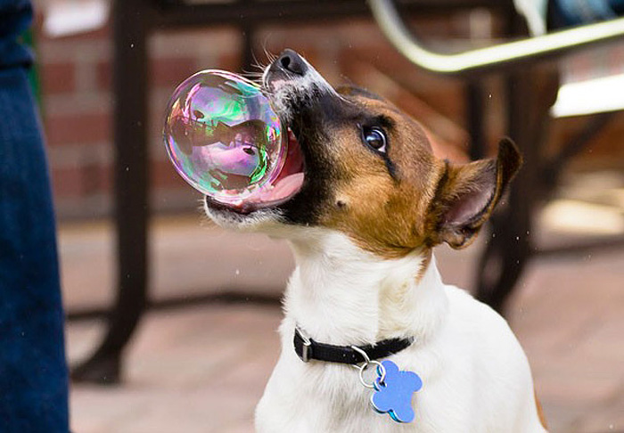 Джек-рассел и мыльный пузырь.