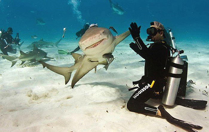 Дай пять: дайвер и акулий плавник.